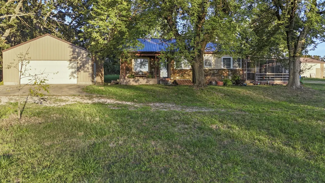 This mini farm has a lot of potential. Highway 37 frontage. Home has been updated with new flooring, new breaker box and some new wiring. Has metal roof with stone and wood siding. Home has central heat and A/C with gas wall heater for backup. 3rd bedroom does not have a closet. Has an office area. Bring your cows or horses. 15.6 acres has good fence and small pond. Property has a 24x24 detached insulated garage with metal siding and roof. Concrete floor with electric. Property also has a 30x60 metal building that is insulated with heat and A/C. Has a bathroom also. Was a flea market. Propane tank conveys with property. Has new well house and updated equipment in well house.