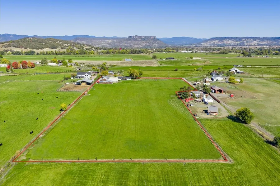 Exceptional Property: Two homes, both single level & well-maintained, located on 9.86 lush, irrigated acres w/expansive views of the Table Rocks, Mt McLaughlin, Roxy Ann Peak, & more. This area of Scenic Ave is a desirable central location that offers the best of both worlds: near-town convenience paired with a peaceful rural setting. Level, productive, & user-friendly land, (8.4 acres) RRV irrigation dist., updated 10'' lateral in place. This is a fantastic two-family setup or use the rental income. The main home has been beautifully maintained/nicely updated: brand-new roof & concrete driveway, lrg. covered patio, hardy siding, vinyl windows, flooring, bathroom & kitchen updates. The 936' sqft 1 bed/1 bath 2nd home: rented $1,000 mon-mon, has great floor plan w/office/hobby rm, open liv/dining area, kitch/utility rm. & covered frnt porch. Offers (2) separate shop buildings: (1) w/offi...