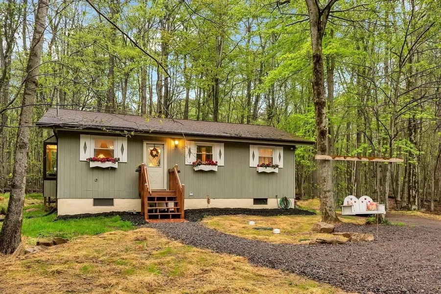 This cozy home offers three bedrooms and one bathroom, spread across 816 square feet of inviting living space. Each room is designed for comfort, with a large bay window in the living area that offers a picturesque view of the surrounding Pocono forest, bringing nature right to your doorstep.