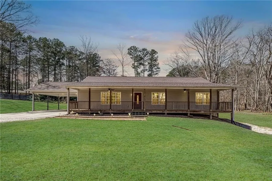 Price Improvement Below Market Value. Welcome home to Peaceful Country living in the highly sought-after South Paulding community. This beautifully maintained property sits on 1.5 private acres offering the perfect mix of modern comfort, outdoor space, and everyday convenience, with no HOA. The open-concept layout creates a warm, welcoming flow from the spacious family room into the dining area and a light-filled kitchen featuring custom cabinetry, granite countertops, and plenty of prep space. Just off the kitchen, an oversized laundry room provides additional storage and space for a second fridge or freezer. Down a wide hallway, you'll find three generously sized bedrooms, including a private owner's suite with a large ensuite bath—designed for rest and relaxation. Enjoy quiet mornings on the rocking chair front porch or entertain on the back deck overlooking a fenced area—perfect for pets and outdoor living. The property also includes a large pole barn ideal for RV, boat, or equipment storage, and a full unfinished basement with a boat door, offering room for a workshop, additional storage, or future expansion. Located minutes from Dallas, Hiram, and Villa Rica—with quick access to shopping, dining, hospitals, and top-rated schools—this home offers both convenience and privacy. Don't miss the opportunity to make this special property your own. Schedule your showing today!