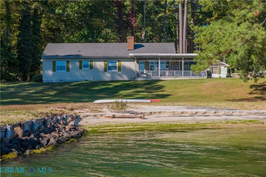 This nostalgic Piankatank River cottage offers one of the area’s most desirable features, a private sandy beach with sweeping, expansive views and more than 200 feet of pristine waterfront. The protected, riprapped shoreline and gentle walk to the water create the perfect setting for swimming, kayaking, and watching passing boats. In addition to the 1.04-acre waterfront parcel, a wooded 0.34-acre lot across the drive provides space for a future guest house or garage. This is a rare opportunity for a buyer to add their personal touch to a classic river cottage with timeless character and endless potential. Inside, heart pine paneling adds warmth to the spacious living room, where built-ins frame a brick fireplace and a large picture window showcases the river. The open-concept layout has a kitchen with traditional pine cabinetry and bar seating. The dining area features brick flooring, be...