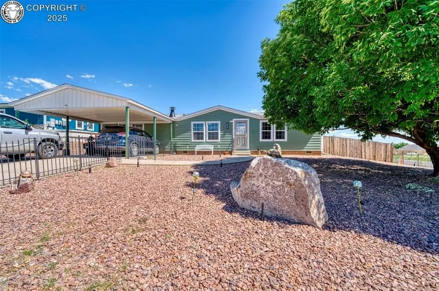 It's time to schedule your tour of this extremely well maintained home home situated on corner lot just outside of Florence, Colorado (home to the area's Antique Capital). This home is truly Move-in ready! Even the wall mounted TV's are included in the purchase! Home has a low maintenance xeriscaped fenced front yard with a large shade tree. Large carport provides covered parking for at least 2 vehicles plus on street parking in the front and side of home. This home has the huge benefit of a double corner lot (that's nearly an half acre!) with an amazing view of Pikes Peak from the 10x40 covered back deck. Entire back yard is fully fenced with a wood privacy fence, raised garden beds (with easy watering system already in place). Solar panel/system are included which reportedly reduce the monthly electric bill to about $10/month with an assumable loan for a little over $118/month. There's also a well built 12x24 shed in the backyard to store all the extra things, including the Husqvarna riding mower which is included. (How thoughtful is That!) Inside you will enjoy the large living room with a fireplace and big dining area adjacent to the kitchen for a comfortable dining experience while enjoying your mountain views and city lights at night. Split bedroom floor plan provides additional privacy with a large master bedroom with a 5 piece attached bathroom and convenient walk in closet. Additional pluses go beyond the solar panels add the new roof(transferrable warranty) and upgraded siding completed in December 2024 along with a recently purchased multiple camera security system with audio and video capabilities is also included. Schedule a tour and Discover your new home!