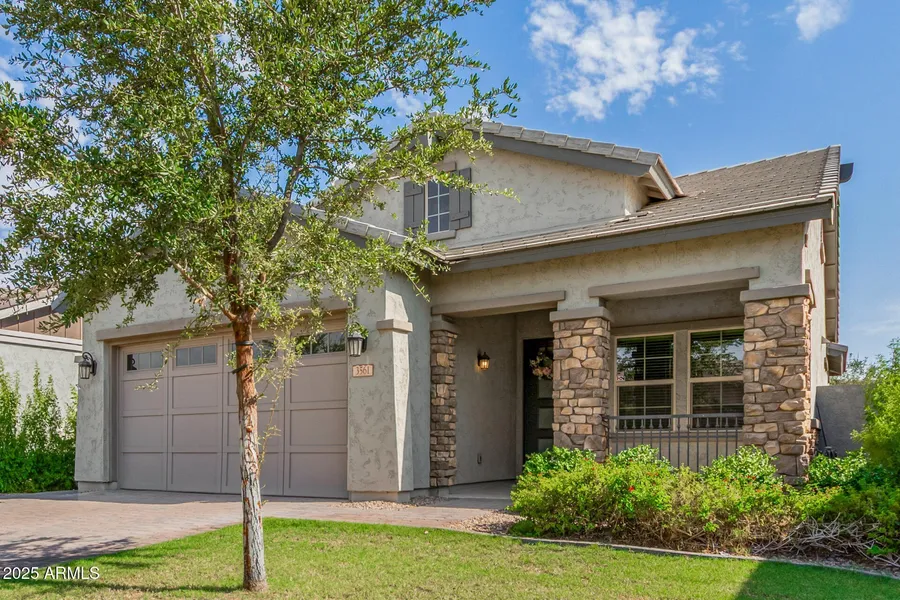 Welcome to the iconic, tree-lined community of Morrison Ranch, nestled in the heart of Gilbert! Located in Lakeview Trails Southwest, this better-than-new home offers a beautifully designed 3-bedroom, 2-bath floorplan, plus a versatile flex space and a spacious 2.5-car garage. This highly sought-after split, open-concept layout has been meticulously maintained and showcases charming curb appeal with a lush green lawn, cozy front porch, paver driveway, and timeless architectural details. Inside, you'll find thoughtful upgrades throughout, including neutral color palette, elegant crown molding, wood-tile flooring, charming electric wall fireplace, multi glass slider, water softener, tankless water heater, and abundant storage. The kitchen opens to the great room and is a chef's delight featuring stainless steel appliances, a gas range, granite countertops, tile backsplash, recessed lighting, a walk-in pantry, ample cabinetry, and a center island with breakfast bar, perfect for both daily living and entertaining. Easy to show! Welcome home :)