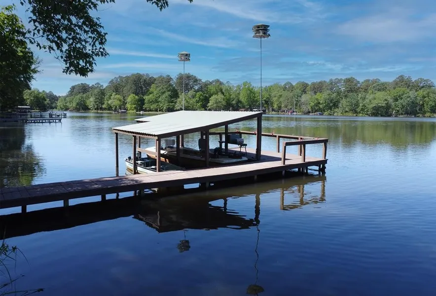 Welcome to Brookhaven in the Pines surrounding approximately 70-acre Brooks Lake. surrounded by 700 plus acres of forest with hiking trails for your recreation. Brooks is Spring fed and constant level. Fishing here is great from your own private pier and boathouse. Over .78 acres, with an RV carport and large metal shop with extra parking. Features include a large living room with beadboard ceilings sunroom with wide views of the lake. Next is the family room, with high vaulted beadboard ceilings, fireplace, a separate bar with wet sink, and a wall of bookcases. Kitchen features granite countertops, island, induction range, dishwasher, and pantry. Large primary bedroom suite with 3 closets and separate office area. Home also has a water filtration system and a Nest thermostat. Separate 2 car garage has a full wall of enclosed storage shelves and a separate shop with AC. All this and a large deck with fantastic sunset views over the widest part of the lake. PICTURES COMING SOON!!