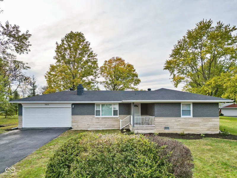 Welcome to this beautifully renovated three-bedroom, one and a half-bathroom ranch home, perfectly situated on a spacious one-acre lot. This charming property features a cozy living room with a fireplace, ideal for relaxing evenings. Enjoy the sunlight in the bright sunroom or unwind on the covered front porch, which adds to the home's inviting charm. The home boasts all-new windows that enhance energy efficiency and natural light throughout. The modern kitchen comes equipped with brand-new appliances, making it a cook's dream. The exterior features beautiful professional landscaping, enhancing the curb appeal and creating a serene outdoor atmosphere. A convenient two-car garage and a shed provide ample storage space. This property is conveniently located with easy access to I-465 and Kentucky Avenue, making commuting a breeze.