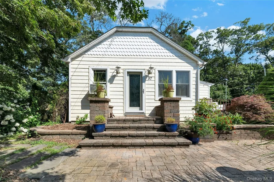Charming Ranch Nestled on Shy Quarter Acre, Open Floor Plan, Bight & Airy. Living Room Boasts Vaulted Ceiling, Beautiful White Beams, Ceiling Fans and Wood Burning Stove. Kitchen Offers Stainless Steel Appliances, Gas Range, Ceramic Countertops and Backsplash. Dining Room has Sliders to Wood Deck Leading to Expansive Backyard. Primary Bedroom With Ceiling Fan and Sliders to Patio. Quaint Updated Laundry Room With Shiplap Ceiling, Tile Floor, Washer, Gas Dryer and Outside Entrance. Home Offers Andersen Windows, Newer Roof, Large Attic With Plenty of Storage, Beautiful Paver Walkway, Storage Shed, Bilco Doors Leading to Partial Unfinished Basement with Utilities & Ample Storage Space. Minutes to Famous Smith Point Beach & County Park, Conveniently Located Near Shopping, Dining, Highways & Train Station. Low Low Taxes!! Must See!