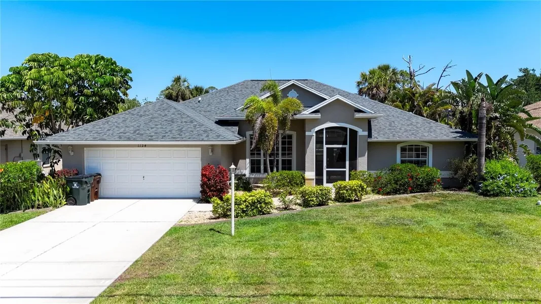 Under contract-accepting backup offers. Welcome to this open and spacious 3 bedroom, 2 bath single family home with 2 car garage, ideally situated on a scenic freshwater canal in desirable Waters Edge Estates. This move-in-ready super clean gem offers a peaceful Florida lifestyle with plenty of upgrades and thoughtful touches. This home is so sunny and bright with many windows throughout. You'll love the screened lanai with a sparkling saltwater pool perfect for relaxing or entertaining. The cozy lanai furniture has been left for the buyer's convenience. Several rooms open directly onto the lanai creating seamless indoor-outdoor living. There's even a outdoor patio perfect for grilling or soaking up the Florida sunshine while overlooking the peaceful water views. The interior is a split plan design with a spacious primary suite designed for privacy. All appliances are included in the well-designed kitchen with breakfast bar that flows into a spacious family room. Even the washer and dryer are included in the indoor laundry area. The large fenced backyard is ideal for privacy and pets, and the irrigation system draws from the canal making your yard maintenance a breeze. Newer updates include roof replacement, hot water heater, pool cage, gutters/soffits and more. Don't miss these added bonuses... no hazard flood insurance required (Flood zone X), no CDD, and low annual HOA fee!!! The property is connected to central water and has easy access to schools, shopping, restaurants, Sarasota Memorial Emergency and Care Center and I-75. Don't miss this opportunity to live in a serene waterfront setting close to many North Port amenities.