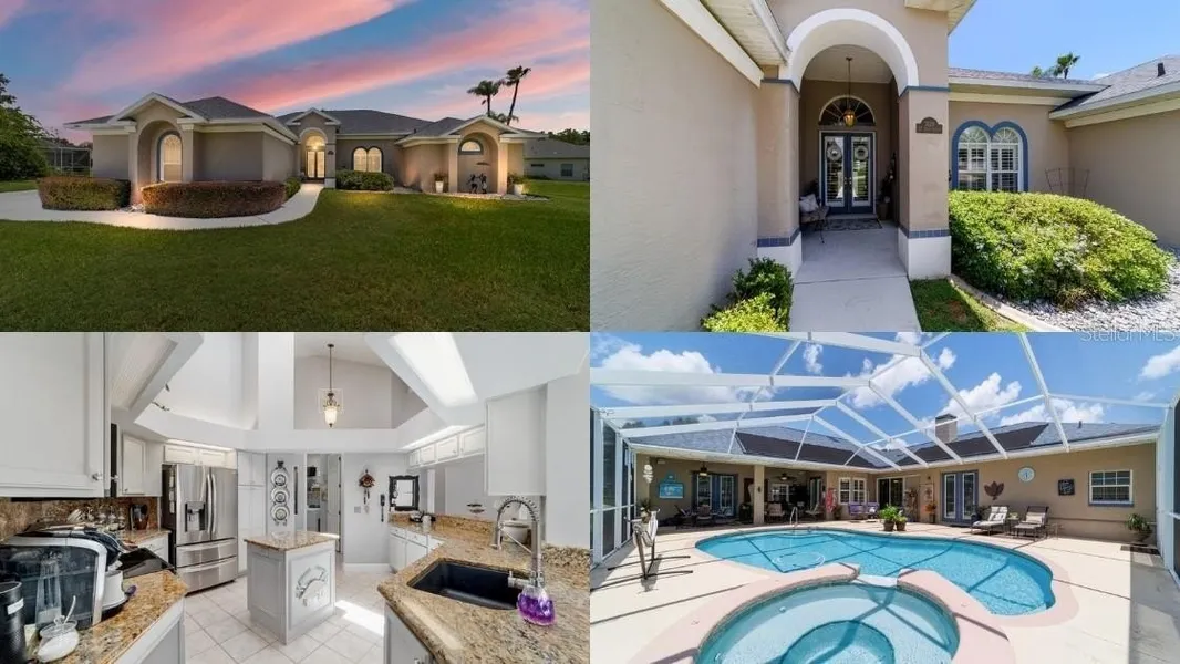 Under contract-accepting backup offers. BETTER THAN NEW CONSTRUCTION. Quality & Upgrades! You cant build this Quality Home, of this SIZE, Solar Heated Pool, these Luxury Finishes & Design any where near this price. With Fully Attached Mother In Law Quaryers (w/full laundry room). Must SEE! Seller's sacrifice their Forever Home. ROOF 2020. Are you looking for that friendly little neighborhood where you can ride your bike, walk your dog and your neighbor smiles & waves. You've found it! Very RARE opportunity, this LUXURY POOL HOME offers an attached, fully functional IN-LAW QUARTERS which could easily be rented for $1,500 month or Air BnB. NEW Freshly PAINTED GARAGE FLOOR & POOL DECK! When you drive up to this home you are struck with the Majestic Elevation it presents and subliminally reaches out - calling you to want to SEE the inside. As you enter you are greeted with Palatial high CATHEDRAL CEILINGS and a 3/4 wall-MODERN DESIGN, accenting the kitchen, dining room and sitting room. As you move about, you come upon a large working kitchen with Island & a Breakfast counter, side bar for daily use & Full Breakfast Nook overlooking the pool & summer patio. . Relax in your oversized family room being soothed with the view to your GAS FIREPLACE and off to the right a Gorgeous view to you Birdcage, SOLAR HEATED *POOL & WATERFALL SPA*. Private Access to Primary Bedtoom. Your primary bedroom, has a CATHEDRAL CEILING, is truly KING sized offering "Jack & Jill" WALK IN CLOSETS and a PRIVATE ACCESS to your pool deck area. Primary bathroom offers a Deep Soaking TUB with separate Shower Stall and luxury extended counter, with MAKE-UP vanity, and a separate water closet for privacy. Meandering to the other side you are comforted with Spacious 2nd & 3rd bedrooms, an exceptionally WIDE Guest Bathroom... Oh , THERE'S MORE... then as you open the PRIVATE ENTRANCE door (lockable), to the Third Wing of the house...( Successful Air BNB-) the Piece De Resistance, a fully functional IN-LAW QUARTERS, featuring a private exterior entrance ( w/parkin, Full kitchen with BREAKFAST BAR, dining & living rooms over looking the pool with private access. The POOL w/ SPA area and covered LANAI great for ENTERTAINING or... just RELAXING after a hard day at work. Leaving the Birdcage the entire backyard has perimeter Whitte VINYL FENCE offering privacy to the GAZEBO COVERED sitting area for admiring the Lovely Landscape. Primary Bedroom, Primary Bathroom and FULL LAUNDRY Room with Washer, Dryer & Cabinets. Great for Extra Income , College student, or Extended family. Flexible floor plan for any lifestyle. Highly Sought after school districts. Location is close to Ocala Night Life & Dining, shopping, medical facilities & entertainment, along with the Baseline Trailhead just minutes away. Truly a FLORIDA style opportunity with all the modern conveniences. You really NEED to experience the beauty of this property and make it your own.
