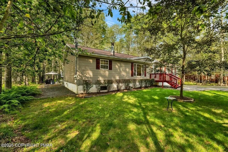 Step outside to your serene backyard retreat, featuring a screened gazebo, perfect for enjoying the fresh Pocono air, and a private hot tub for year-round relaxation. A large shed offers convenient storage for all your tools and recreational gear.