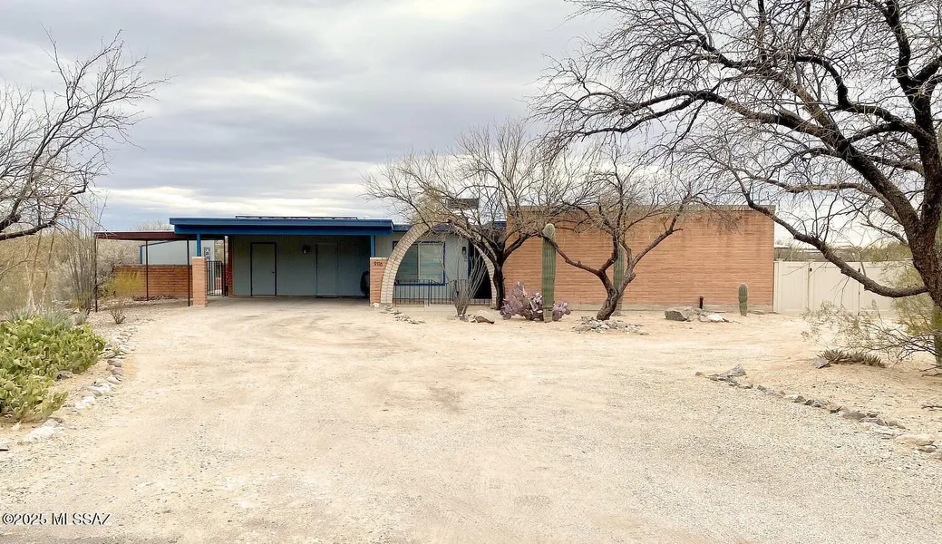 Nestled on a sprawling almost 1 acre cul-de-sac lot that backs up to a wash, this updated 4-bedroom, 2-bathroom home offers natural desert and mountain views. It has room for RV parking, three covered vehicle spaces, and more. This home has a cold new HVAC (2023). It also has solar energy system which means your utility bills are CHEAP. Horses considered with pet fee - horse facilities including a corral, shaded awning, and an open-front hay shed. If you are looking for an urban homesteading ranch-style house in the highly sought after Tanque Verde area, this is the place for you!