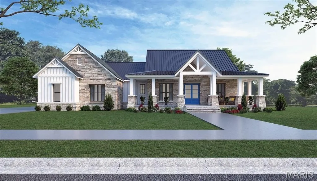 Your chance to build your dream home on 1 acre in Wildwood! This is truly a dream ranch home! Wonderful wooded lot will bring the relaxation and privacy you crave! Still time to customize! With a 46ft long covered front porch you are sure to be impressed even before you enter the front door. Beautiful stone style exterior with bat and board siding grace the entrance. Impressive interior with 10 ft high and vaulted ceilings, engineered wood floors, main level office, split bedroom plan with jack n jill bath, and walk-in closets for the secondary bedrooms and a primary bedroom wing which features main floor laundry, huge walk-in closet, and a gorgeous primary bath with corner silver tub! The kitchen features an almost 20ft long island, beautiful range hood and higher end appliances, oversized walk-in pantry. The rear covered maintenance free porch is where you will really find the solitu...