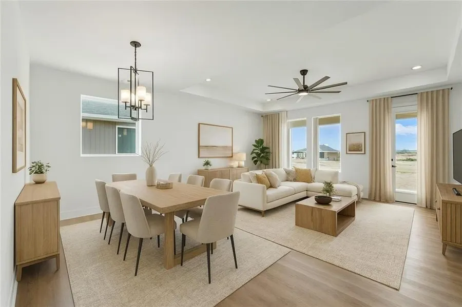 This popular Hill floor plan offers 1,690 sq. ft. of well-designed living space with 3 bedrooms, 2 bathrooms, and a 3 car garage. Perfectly crafted for families on the go, the heart of the home is the spacious kitchen with a grand island — ideal for casual breakfasts, homework time, or evenings with friends. The bright, open great room features a tray ceiling and plenty of natural light, creating the perfect space to gather and relax.