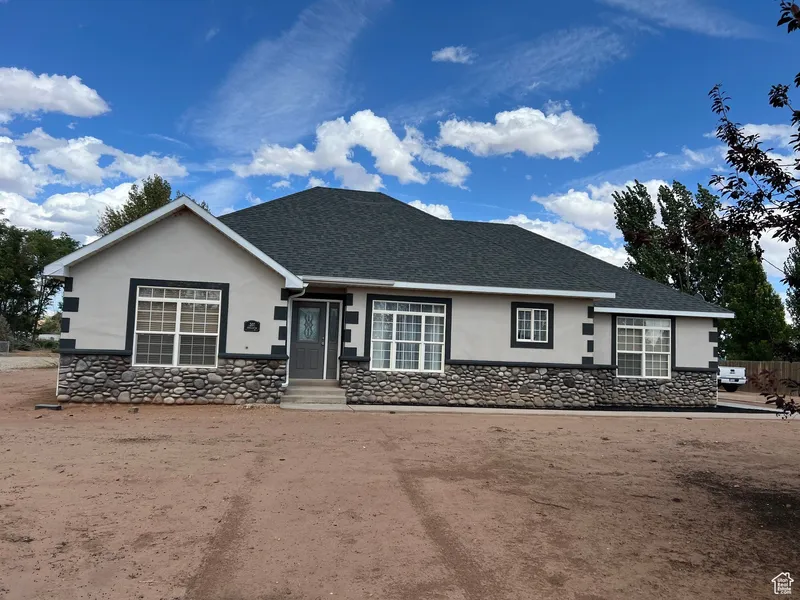Beautiful 4-bedroom, 2-bath rambler on 1.32 acres in the quiet Stonegate neighborhood of Roosevelt! Built in 2005, this 1,871 sq ft home offers single-level living with a spacious open layout, formal living room, and large family room. The kitchen includes a range, refrigerator, microwave, built-in dishwasher, and dining space, with easy access to a patio for outdoor entertaining. The primary suite features a walk-in closet, jetted tub, and separate shower. Additional highlights include 1 water share ($150/Year) vaulted ceilings, hardwood and tile flooring, double-pane windows, central air, propane forced-air heat, and electric dryer hookup. Paint your own blank canvas with a yard that you can craft to your liking. The 2-car attached garage provides storage, plus RV parking for all your toys. Outside, enjoy mature trees and mountain views-all on a flat, usable lot ideal for animals or a...