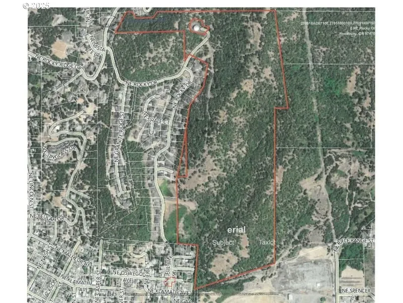 128.96 acres total; 125.61 acres withing the city limits of Roseburg, and 3.35 acres outside city limits. Access to property off of Rocky Drive & NE Gardiner St which is unimproved at this time. Potential for major subdivision, condos, or a single home. Original subdivision plans available at listing office. prices at $2,700/acre.