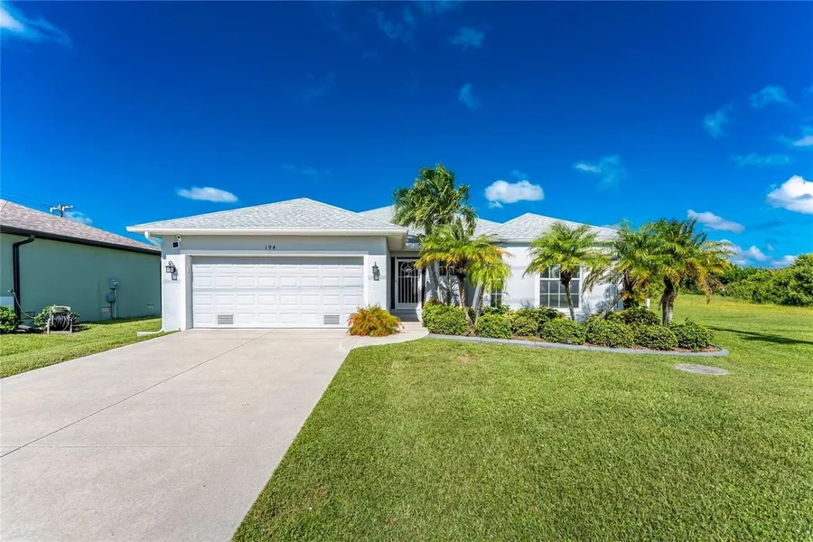 Beautifully Maintained 3-Bedroom Pool Home Designed for Comfort and Entertaining in Rotonda Heights! Welcome to your next home, thoughtfully built in 2006 by Roberts Homes. This spacious residence features 3 bedrooms, 2.5 bathrooms, and a 2-car garage, offering plenty of room for both everyday living and entertaining. Outside, a 2022 roof and hurricane shutters provide peace of mind, while mature tropical landscaping and a screened entryway create a warm and welcoming first impression. Step inside to find a bright, open great room with vaulted ceilings and views extending through the triple pocketing sliding glass doors to the sparkling pool. If you love to cook, the kitchen will be your favorite space. It features granite countertops, ample white cabinetry, stainless steel appliances, walk-in pantry closet, decorative plant shelves, and a large breakfast bar. The adjoining dining area’s aquarium window frames panoramic views and the French door gives quick access to the pool. The ensuite primary bedroom includes a tray ceiling, sliding doors to the lanai, and dual walk-in closets. The primary bathroom offers a spacious dual-sink vanity and a fully tiled walk-in shower. The split floor plan ensures privacy for both you and your guests, with a pocket door that separates the guest bedrooms and a guest bathroom with a fully tiled shower and tub combination. The interior laundry room adds convenience and extra storage, complete with upper and lower cabinets and a folding counter. Outdoor relaxation is easy on the partially covered, screened lanai where you can float your cares away in the heated pool. The half bathroom on the lanai adds convenience for everyone, and an extra storage closet keeps pool accessories neatly tucked away. Landscaping around the pool cage provides natural privacy, and an outdoor shower is perfect after beach, boating, or golf days. Recent improvements add to the home’s appeal, including fresh interior paint completed in 2024, a recoated pool deck, new soffits and gutters in 2023, and updated exterior paint in 2019. Rotonda Heights is close to five premier golf courses in Rotonda West, scenic walking trails, and miles of canals ideal for fishing and kayaking. Area beaches, shopping, dining, and local entertainment are all just minutes away. This home at 194 Sunset Road truly offers everything you need to enjoy the Florida lifestyle.