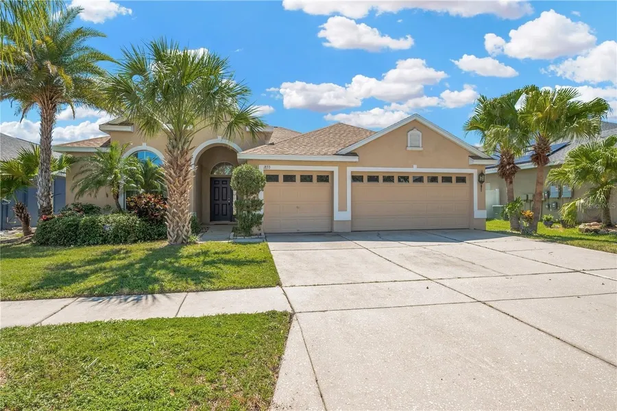 Basically new roof, OPEN TO ALL OFFERS *100% Financing available, call for details* Discover this charming 4-bedroom, 3-bathroom, 2210 Sqft home nestled in the sought-after Lake Front Mira Lago community in Ruskin. This community is centrally located between Tampa, St. Petersburg, and Sarasota for convenient access to all 3 and world renowned beaches. Step into a fresh featuring sleek finishes and an inviting open-concept layout. The spacious living area flows seamlessly into your gourmet kitchen, ideal for hosting gatherings or enjoying cozy family nights. The primary suite hosts dual walk-in closets and a luxurious en-suite bathroom with a soaking tub and glass-enclosed shower. The thoughtful triple-split floor plan ensures privacy, with two secondary bedrooms sharing a well-appointed bathroom, and a secluded fourth bedroom with access to a third bathroom—perfect for guests or an in-law suite. Outside, a fully fenced backyard and a generous covered lanai. The oversized 3-car garage provides ample space for vehicles, hobbies, or storage. Mira Lago’s resort-style amenities elevate your lifestyle, with a sparkling community pool, playground, and basketball court set amidst manicured grounds. Conveniently located near I-75, you’re just moments from vibrant beachside dining, shopping, and entertainment. Don’t miss this rare opportunity to own a move-in-ready home in one of Ruskin’s most coveted communities.