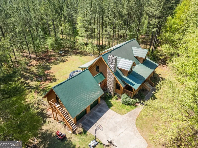 Experience the perfect blend of rustic charm and modern convenience in this stunning log cabin nestled on 10.22 private acres in Jasper County. Surrounded by abundant wildlife, this home offers the ultimate in peace, privacy, and natural beauty-a true outdoor lover's paradise. Interior Features include gorgeous hardwood floors, walls, and ceilings with exposed beams and vaulted ceilings that create a bright, airy, and spacious feel. An open-concept living room, kitchen, and dining area is ideal for entertaining and family gatherings. The stone masonry fireplace in the living room is perfect for cozy, cool evenings. A large loft overlooks the main living space - perfect for a reading nook, office, or guest retreat. The oversized upstairs space easily convertible into two additional bedrooms. Kitchen Highlights include solid surface countertops, a large center island, a new wall oven, perfect for both function and beauty, separate cooktop and dishwasher. A spacious master bedroom with ensuite bathroom includes double vanities, solid surface countertops and two walk-in closets. This is outdoor living at its best with a rocking chair front porch and oversized screened-in porch - sip your coffee and watch deer and wild turkeys wander by. A detached garage includes a large floored attic for storage. The unfinished basement includes a full bathroom, large closet and is studded for fourth bedroom, additional closet, and game room/family room. An additional fireplace can be constructed and connected to the one upstairs. A large storage room/workshop includes a second laundry hookup. Additional Features include three HVAC systems for year-round comfort. Tax records do not reflect the full heated square footage This beautiful property offers everything you need for comfortable country living - with space, serenity, and timeless character. Located in Monticello, GA - just far enough away to feel like a retreat, yet close enough to town for everyday needs.