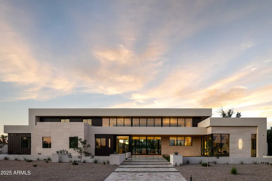 Detached guest house serves as a complete secondary residence with kitchen, living room, laundry, 3-car garage, and private gated entry. Outdoor amenities include pool, kitchen/bar, and sports court. This estate blends comfort and entertainment with a seamless indoor-outdoor design. Each bedroom offers its own en-suite bath, providing privacy for family and guests. The detached guest house makes multi-generational living or hosting long-term visitors effortless. Resort amenities include a sparkling pool, outdoor bar and kitchen, and full sports court. With modern architecture, high-end finishes, and move-in ready completion, this is one of Scottsdale's rare new-build luxury offerings.