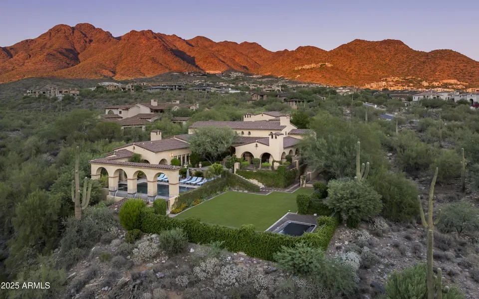 Nestled privately on 2.14 acres in the coveted Upper Canyon of Silverleaf, this exceptional custom estate captures the essence of luxury desert living. Perfectly positioned against the serene mountain preserve, the home offers breathtaking panoramic views of the surrounding mountains, vibrant sunsets, and glittering city lights below. Thoughtfully designed with a seamless blend of comfort and sophistication, the residence features four bedrooms and four and a half bathrooms, including an interior guest casita with a private entrance—ideal for visiting family or guests seeking their own retreat. A gated auto court leads to a four-car garage, offering both privacy and convenience. Inside, every detail has been crafted with care, from the refined architectural lines to the warm, inviting interiors that open effortlessly to expansive outdoor living spaces. Whether entertaining beneath the desert sky or enjoying a quiet evening by the fire, this home embraces Arizona's indoor-outdoor lifestyle at its finest. This is a rare opportunity to own a very livable-sized home on an expansive estate lot, offering exceptional privacy, stunning views, and incredible value in one of Silverleaf's most prestigious enclaves.