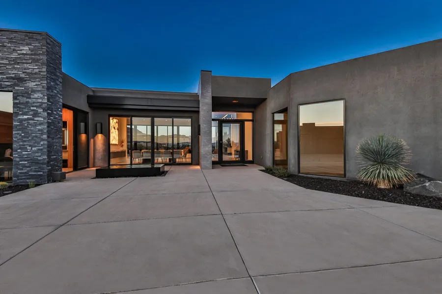 On top of the World! A Truly One-of-a-Kind Contemporary Estate featuring endless modern conveniences, sitting atop your own private Lava Plateau. One of The Premiere homesites in The Entrada at Snow Canyon Country Club. The home sits 28 feet above the street below, offers 360 degree views, including a picture perfect framing of Snow Canyon, Red Mountain, Pine Valley Mtn, Movie Rock, and the