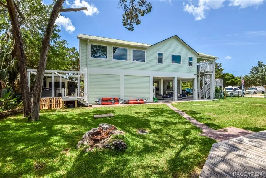 They call it resort living for a reason! The cares are laidback and you're living on Island time in your year 'round vacation resort in Ozello Keys! The coastal design inspirations of this amazing home only serve to complement the life you imagine. A scenic canal curves its way a short distance to the St Martins River where the marked channel will lead you safely to and from the scalloping grounds and beyond in the Gulf of Mexico! Early morning fishing trips will be full of surprises with Dolphin catching their morning meal, too! Major upgrades to full-scale resort worthiness include a hot tub on a raised composite deck for stargazing with the one you love, an RV parking pad with 50 Amp outlet, and new windows throughout including three large picture windows providing water views from the multi-purpose bedroom. Electric blinds on most windows define luxury in window treatments and luxury vinyl plank floors are consistent throughout the home. The white kitchen really sparkles as the sun bounces around the new stainless-steel backsplash, appliances, and granite countertops. The caddy on the cargo lift will deliver your provisions up to the front landing while you put your time in on the stairs, rebuilt and reinforced with composite planks they will long outlast your desire for climbing them, but your health will thank you! Paver pathways lead through the yard to the waterfront where you'll find a convenient wood deck that stretches the length of the seawall up to the boathouse with a 6000 lb boat lift along and cleaning station. The ground level includes water views from the large living space and three enclosed storage/workshop rooms, too! If you're looking for a convenient get-a-way, get on the trail, Ozello Trail that is and head west into the sunset.