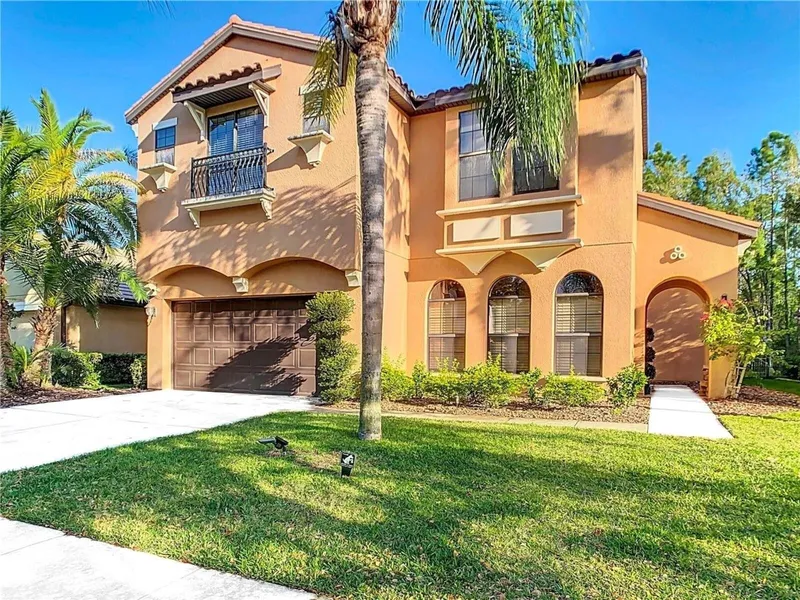 PRICE TO SELL – WON’T LAST LONG! Back on the market with brand-new luxury vinyl flooring upstairs! Stunning Mediterranean-style home in Grand Hampton featuring 4 bedrooms + office/den, 3.5 baths, and 2-car garage. First floor offers textured engineered hardwood floors, soaring 15-ft ceilings, and abundant natural light with French doors opening to a screened lanai and serene conservation views—no backyard neighbors! Gourmet kitchen with granite countertops, stainless steel gas appliances, 42” cabinets, island with sink, and dining area. Upstairs includes spacious bedrooms and an oversized master suite with walk-in closet, wooded views, and luxury bath with dual vanities and walk-in shower. Gated community with resort-style amenities: zero-entry pool with waterslide, lap pool, tennis courts, clubhouse, and more.
