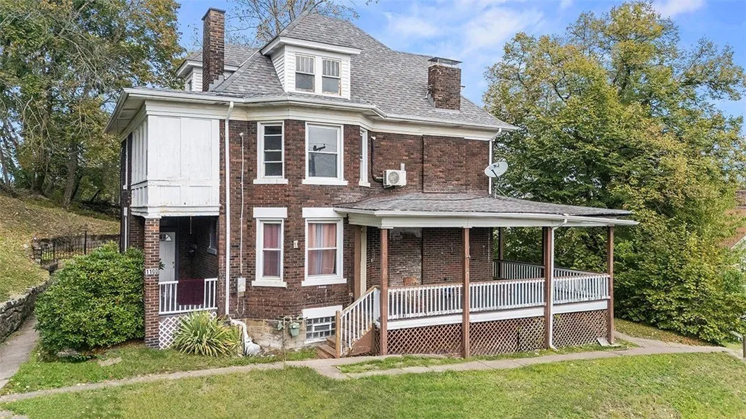 A spacious duplex sits on a large lot with a practical layout with private entrances for each unit. The ground floor is a one-bedroom apartment with soaring ceilings, a generous living area, a full kitchen, and a bathroom. The second unit spans the upper two levels, offering three bedrooms, a full kitchen, bathroom, a bright living room, and an additional room perfect for a home office or reading nook. A showstopper expansive wraparound porch that stretches across the front and sides of the first floor—ideal for relaxing outdoors or hosting friends and family. The large yard is large but very manageable. Perfect for the owner occupant or investors buyer.