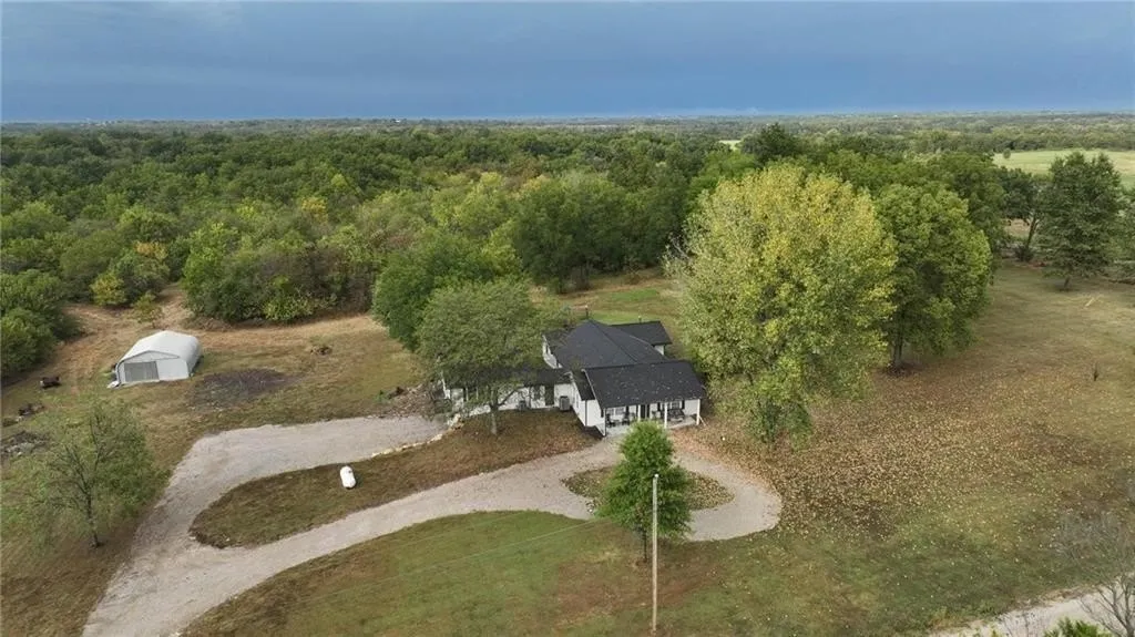 BACK ON MARKET - NO FAULT TO THE SELLER! Welcome to your dream retreat! This stunning 4 bedroom, 3 bath ranch home sits on 30 serene acres, surrounded by peaceful views and abundant wildlife. Step inside and you’ll be greeted by vaulted ceilings with rich wood accents, gorgeous light fixtures, and a completely remodeled interior that blends modern elegance with rustic charm. The oversized living room is anchored by a cozy wood-burning stove and opens onto a spacious patio, perfect for quiet evenings while overlooking your acreage. The kitchen offers tons of cabinet space, granite countertops, a farmhouse sink, updated lighting, large kitchen island, dining area, plus a huge walk-in pantry with room for an extra fridge/freezer, and built-in storage and appliance area. All 4 bedrooms are oversized and feature walk-in closets, each designed with comfort in mind. The bathrooms have been beautifully remodeled, each with its own unique character. This property features two possible master suites. To find one, walk through the breeze way to a secluded bedroom that includes a large walk-in closet, expansive bedroom space, and direct access to a freshly stained deck overlooking the peaceful countryside. With two spacious suites, the home is great for comfortable generational living, offering privacy and convenience for extended family or guests. Laundry room and an additional mudroom provide everyday convenience. The home is also equipped with all newer dual HVAC units and water heaters, roof is 3 years old. Sit out on the covered front porch enjoying your morning coffee and country life. This property has a 30x40 Quonset building with concrete floors, as well as an attached garage where you will find a storm shelter for peace of mind. The list goes on! Whether you’re looking for a private getaway, a family homestead, or a place to simply enjoy wide-open spaces, this property delivers it all!