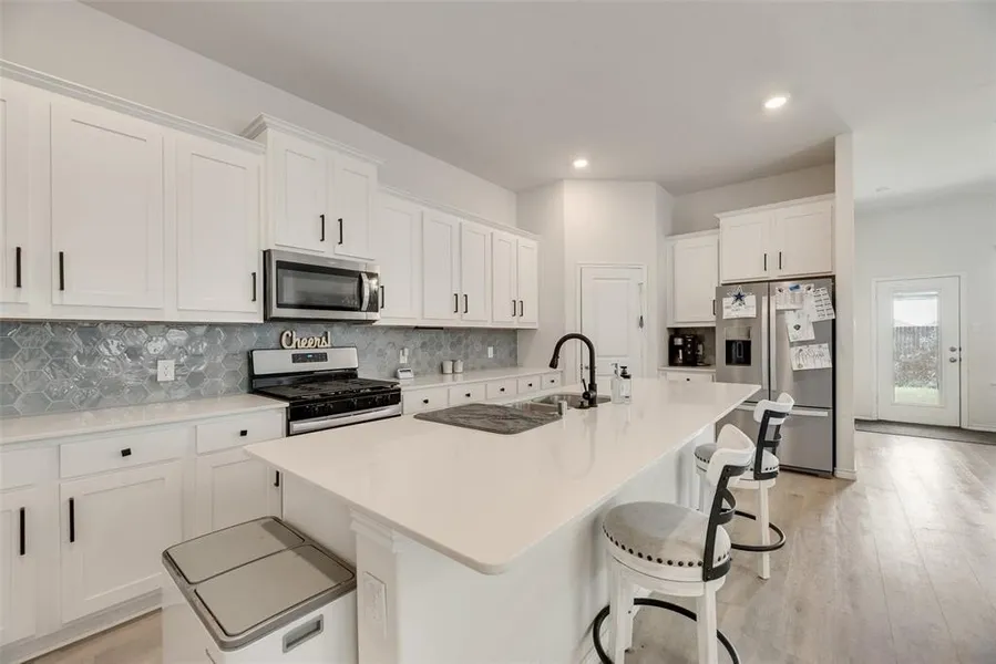 Almost new! Brick and stone front entry on an interior lot in Woods at Lindsey Place. Open plan with kitchen overlooking the living room, breakfast nook and back yard. Gas heat, water heater and cooktop. Quartz counters with white cabinetry and ample pantry. Large master with private bath, oversized shower and separate garden tub. Secondary bedrooms are toward the front of the home and share a bath. Close to 75, schools, restaurants and shopping. NO SUBJECT TO TYPE OFFERS.