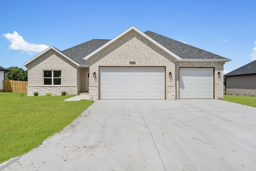Brand new single level home in the newly developed Old Wire Crossing subdivision! Located in Kickapoo School District, this home features an open concept floor plan with 10ft ceilings, custom cabinetry with NO wire shelving, large picture windows, LED lighting throughout and many thoughtful amenities. Inside, discover a spacious living room that flows perfectly into the eat-in kitchen. Kitchen features a center painted island, stainless appliances, Alder cabinets with soft close drawers, Quartz counters, under cabinet lighting, and a pantry. On the West side of the house is the owner's suite with a dual sink vanity, walk-in tiled shower, walk-in closet with custom wood shelving and a pocket door to the laundry/mud room. The East wing of the house features two bedrooms with a central full bathroom. You will love watching sunsets on your covered porch overlooking the yard that features an irrigation system. Neighborhood has fiber internet and underground utilities. Quick access to West Bypass and Springfield!