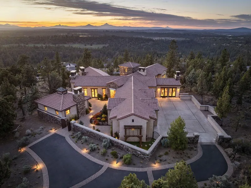 This stunning, completely remodeled North Rim home offers a grand total of 6,389 sqft of beautiful living space, including a separate 450 sqft casita. An additional 1,300 sqft was added to the main house during the thoughtful 2019 expansion, bringing the main home to 5,939 sqft. Iconic Cascade Mountain views span Mt. Bachelor to Mt. Hood. Multiple patios invite peaceful alpenglow mornings and unforgettable sunsets. The main-level primary suite is a private retreat with dual vanities, large walk-in closet, radiant heated floors, and a connected den. The kitchen features luxury appliances: two dishwashers, four ovens, sous vide, ice maker, oversized islands, and more. The lower level offers two ensuite bedrooms, a charming bunk alcove for four, and a wine cellar with prep sink. Outside enjoy your own private pickleball court, turf dog patch with drainage, tranquil water features, sports ro...