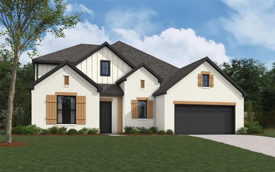 MLS# 20982375 - Built by William Ryan Homes - Dec 2025 completion! ~ This stunning Tudor-style single-family residence, nestled in the desirable Ten Mile Creek subdivision, offers 4 spacious primary bedrooms and 4 bathrooms, encompassing 3 full and 1 half bath across 3,266 square feet of elegant living space. Set to be completed by November 2025, this home features a contemporary open layout, highlighted by decorative lighting and a cozy electric fireplace in the family room. The chef's kitchen is complemented by double vanities in the bathrooms, and offers luxurious finishes throughout, including carpet, ceramic tile, and luxury vinyl plank flooring. Enjoy outdoor living on the covered patio, while the sprinkler system maintains the lush interior lot. Additional highlights include a 3-car garage, carport, and energy-efficient heating and cooling systems. Located within the highly-regarded Celina ISD, with schools nearby, this home is an exceptional opportunity to create lasting memories.