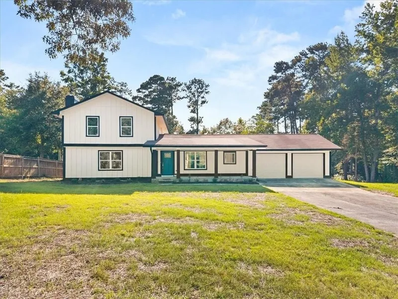 Welcome to this stunning, beautifully updated house situated on a 2-acre lot! This property boasts an exceptional open concept layout that seamlessly connects the kitchen, dining, and living areas, perfect for entertaining and everyday living. Step into a magazine-worthy kitchen featuring a two color cabinetry, brand new quartz countertops with a beautiful sink. The custom-built fireplace and accent wall provides a cozy yet sophisticated ambiance, while exquisite modern laminated floors add a touch of elegance throughout the home. Main level has a convenient bedroom with a full bathroom. The second level features the master bedroom with 2 additional bedrooms and a sitting area; master bath has a nice free-standing soaking tub. Every detail has been thoughtfully designed, including modern lighting fixtures and fans for your comfort. The outdoor space is just as impressive, featuring a beautifully flat and front fenced yard with a charming front porch and a nice back deck, ideal for gatherings or quiet mornings. Another great feature of this house is the long driveway which provides plenty of parking. Everything’s new in this home, including insulation, all new electrical, plumbing, HVAC, water heater, appliances and well. This charming home blends modern updates with classic appeal. Welcome to your peaceful retreat in Conyers.