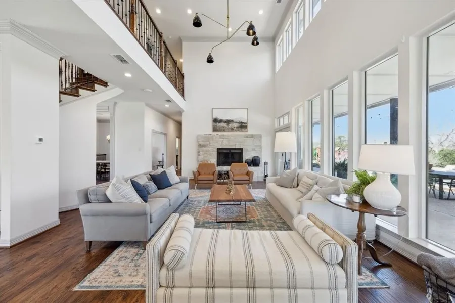 Rare, fully remodeled estate on 7.21 Acres, a true equestrian retreat! This private, fully remodeled estate offers 7.21 acres of cross-fenced pastures that back to scenic Corps of Engineer riding and walking trails. Designed for both luxury and function, the property includes a 6-stall barn with turnouts, a loafing shed, a chicken coop, and two ponds, one stocked with fish and featuring a stunning 19' lighted fountain. The designer home showcases an open-concept floor plan with stone fireplace centerpiece, seamlessly connecting the family room to the chef’s kitchen, complete with commercial grade appliances and exotic granite countertops. Walls of windows flood the space with natural light and offer breathtaking views of majestic trees, rolling pastures, and the crystal blue pool. High end finishes include hand-scraped hardwood floors, designer lighting, oversize primary suite with forest views. Move-in ready and truly one of a kind! All this just a few short minutes from all the best shopping and dining that Highland Village and Flower Mound have to offer PLUS exemplary LISD schools. 5.96 acres AG EXEMPT!