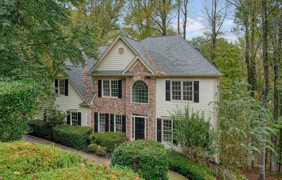Best of both worlds in this serene, nature friendly, wooded lot on over 2 acres while still being in an active, HOA Community! Situated on a beautiful cul de sac, this immaculately kept home features new carpet, fresh paint, and a BRAND NEW renovated primary bathroom. Upon entry, you're greeted with a soaring, two story foyer flanked by a generously sized dining room and a room perfect for an office, playroom or formal sitting room! The foyer flows flows to the oversized, two story living room with stone fireplace and ample windows offering tons of natural light. A beautiful archway leads to the kitchen and eating area. The kitchen boasts stainless steel appliances and ample cabinetry and counter space. The breakfast nook with large, bay windows has the most beautiful backdrop with the back yard! Off the kitchen is a large laundry room with sink and mudroom space. A half bath is also on the main level.