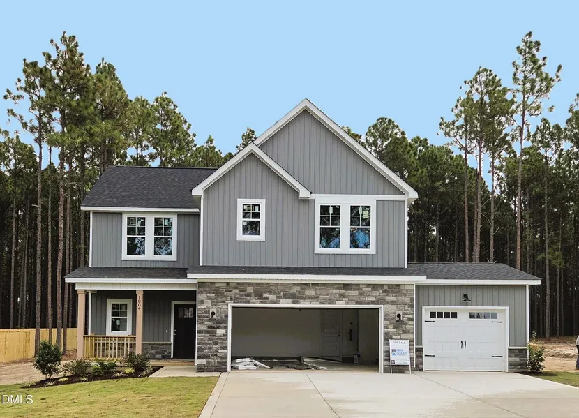 Ben Stout Construction proudly presents the Southbrook Plan in Kingsbury Ridge, North Fayetteville's premier gated community. With a 3-stall garage, this stunning new home sits on a spacious 1.06-acre lot and features modern design elements that are sure to impress. The airy living room, complete with a fireplace, opens to the dining area and kitchen, offering captivating views of the wooded backyard and access to a lovely covered patio. For convenience, a drop zone and laundry area are located off the garage, while all bedrooms are situated upstairs. The luxurious owner's suite boasts a walk-in closet and a spa-like ensuite bathroom with a double sink vanity, a garden tub, and a walk-in shower. Just minutes from shopping and schools, with easy access to Fort Bragg and Fayetteville, this home is perfectly positioned for your lifestyle. Completion is expected September 2025. Welcome home!