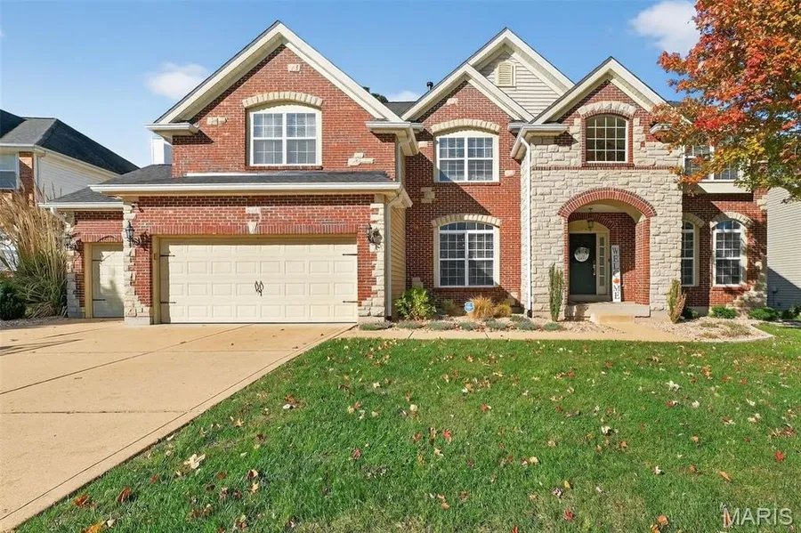 Located within the highly sought-after Rockwood School District, this remarkable Legacy Pointe home invites you to relax and entertain by the custom natural gas fire pit completed with a stone paver patio. This distinguished brick and stone residence, crafted by Jones, features four bedrooms and exudes timeless elegance throughout. The impressive two-story foyer leads to the main living areas, which showcase hardwood flooring and graceful arched windows that invite abundant natural light. The kitchen is equipped with custom 42-inch cabinetry and quartz countertops, flowing effortlessly into an inviting hearth room with a gas fireplace. Upstairs, the home offers four bedrooms and three full bathrooms, including a spacious master suite with a generous walk-in closet and a luxurious bathroom with separate tub and shower. Additional amenities include custom closets, convenient first-floor la...