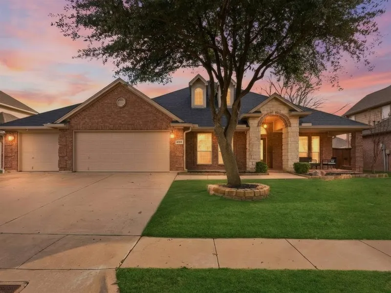Beautiful 1.5-story home located in the sought-after Crawford Farms community, offering a highly desirable and flexible floor plan designed for everyday comfort and effortless entertaining. This light-filled home features five bedrooms and three and a half baths, with four bedrooms conveniently located on the main level. Upstairs, a spacious game room or optional fifth bedroom includes a full bath and a door for added privacy, making it ideal for a guest suite, home office, or private retreat. The open concept kitchen is the heart of the home and features granite countertops, a large island, stainless steel appliances, abundant cabinetry, and a pantry, all flowing seamlessly into the living area. Neutral paint tones, luxury vinyl plank tile, and plantation shutters enhance the bright and welcoming interior. The private owner’s suite is thoughtfully separated from the secondary bedrooms and offers a spa-inspired bath with separate vanities, an oversized stone and tile shower with dual shower heads and multiple body sprays, completed with an impressive walk-in closet with a custom closet system. Step outside to a backyard oasis featuring a sparkling swimming pool with a water feature, a covered patio, perfect for relaxing or hosting gatherings. Additional highlights include a covered front porch, flexible living spaces, and a three-car garage. Enjoy access to neighborhood amenities, including a community pool, playground, greenbelt, tennis courts, and year-round events, all zoned to highly regarded Keller ISD schools.