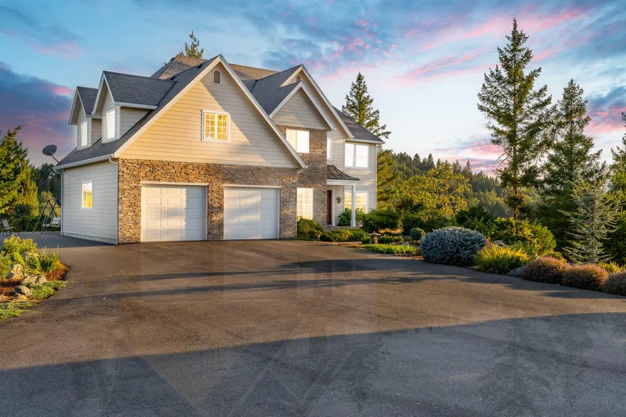 Welcome to this exceptional Grants Pass property offering a perfect blend of luxury, space, and functionality. The 4,011 sq. ft. home features 3 bedrooms, 2.5 baths, and a spacious two-car garage. The oversized primary suite boasts an expansive closet plus an additional storage space, while the large upstairs entertainment area is ideal for movie nights. Enjoy multiple living spaces including a formal dining room, formal living room, and a dedicated office. The 3,218 sq. ft. shop is a dream come true featuring a 10' tall automotive bay with hoist, two standard bays, and a second-floor apartment with bathroom. All garage doors are 10' wide, and central vacuum runs through both structures for added convenience. Outdoor amenities abound with a covered brick paver patio, fenced backyard, fenced garden with storage building, and storage for garden equipment. The paved driveway leads to an ele...