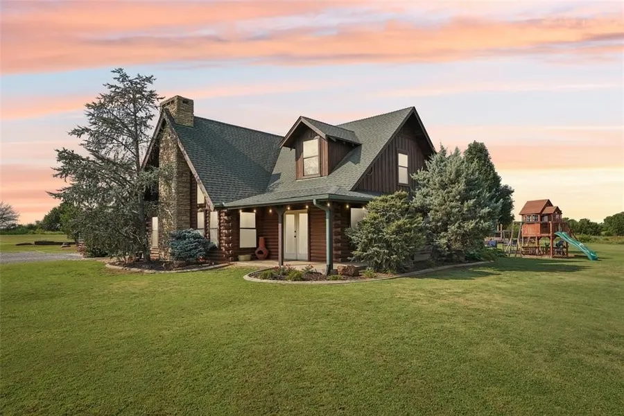 USDA loan eligible with 0 percent down. and 1 percent lender credit available. House appraised at 505,000. Brand New Roof! This beautiful log home sits on 3 beautifully landscaped and fully fenced acres with easy access off S Coltrane Rd and a pool! Bring your animals and call it home! No rough country roads and just a 30 min drive to downtown OKC. This move-in ready home features 4 bedrooms and 3.5 baths, offering a perfect layout for both comfort and privacy. The primary suite is located on the main level and boasts his and hers closets, dual vanities, free standing tub, and a walk-in shower. A second downstairs bedroom and half bath are ideal for guests or office space.