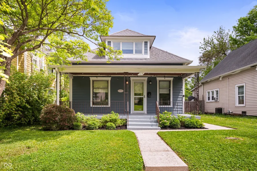 Cute Irvington home with all the charm located in the Irvington Historic District!! Updated 3BR and 2BA with upstairs loft. Beautiful front porch for lounging that leads into the original hardwood floors and charming staircase. Living room and formal dining room with plenty of natural light. Updated kitchen with gas range and exposed brick accent. Main floor primary bedroom with attached updated bathroom. Upstairs loft that was previously used as a sleeping area and currently used as office space. Additional full bath upstairs. With some remodeling the entire upstairs could be turned into a primary suite. Brand new carpet. Fully fenced in backyard with new back patio. 2 car garage with an additional gated third parking space. Basement with perimeter drain and tankless water heater. Come make this beauty your home!!!