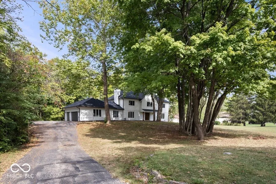 Welcome to this absolutely stunning and newly updated home in the highly sought-after Traders Point community! Perfectly situated on a beautiful 1-acre lot, this home blends timeless character with modern luxury. Step inside through the solid wood double front doors and be greeted by a grand, timeless staircase that sets the tone for the charm throughout. The entryway flows into a cozy yet spacious living room, complete with a stone hearth fireplace featuring built-in shelving. The brand-new custom kitchen is a showstopper, featuring modern cabinetry, high-end appliances, gorgeous tile work, and a functional eat-in peninsula-perfect for both everyday living and entertaining. Enjoy meals in the formal dining room, or relax in the additional living space just off the kitchen. The primary suite is a true retreat, with custom built-ins, a large walk-in closet, and a spa-like wet room featuring a luxurious walk-in shower and a freestanding tub surrounded by natural light and stunning tile. A fully finished basement with a full bedroom and bathroom provides endless opportunities-whether you envision a home theater, gym, or game room. Outdoors, a large back deck overlooks mature trees, offering privacy and peaceful views. Additional highlights include an oversized 3-car garage, fresh updates throughout, and the perfect balance of warmth, elegance, and modern convenience. Come quick to see your new peaceful and charming home retreat!
