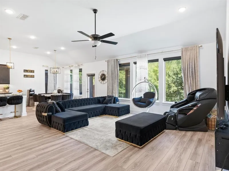 Over 3,100 square-feet! 4 Bed, 2.5 Bath, 4 Living Areas throughout the home. Ideal Lot, backing up to a Geenbelt Space. Located in the highly sought-after community of Valencia on the Lake, minutes from Lake Lewisville! Step inside to vaulted ceilings and an open floorplan flooded with natural light. The kitchen, living and dining areas are perfect for entertaining and quiet family time. The Primary Suite off the living area offers convenience and privacy, as the only bedroom on the first floor. The Ensuite spa-like bath features dual sinks & vanities, a separate shower and soaking tub. The first floor offers a flex space tucked away at the front of the home, perfect as a home office or playroom. The second floor offers three additional bedrooms a full bath as well as Family Room-Loft space and Media Room! Entertain on the covered back patio, in your private backyard. The Resort like Com...