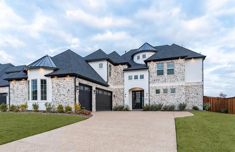 Stunning Mercury Luxury Pinehurst Elevation C with turret on an 80x150ft lot with a 3-car J-swing driveway. The elevation has brick, hardcoat stucco & stone. This 4201 SF home includes 4 beds, 3.5 baths, gameroom, media & study. The 25ft grand entry foyer with turret opens to a winding hardwood staircase with a lighted barrel archway leading to the 2-story family room with 5 large windows. The kitchen opens to a sunroom & dining area & features a massive quartz waterfall island with pendant lights. Elegant Somervell hardwood flooring throughout. The master bath includes a freestanding soaking tub and double glass shower with seat. Kitchen highlights: SS double ovens, French door fridge, gas cooktop & SS vent hood. The family room features a sleek linear fireplace. The home has under-cabinet lighting & Atmos-wired media room with 7.1 surround sound & 2in faux wood blinds throughout. Neutr...