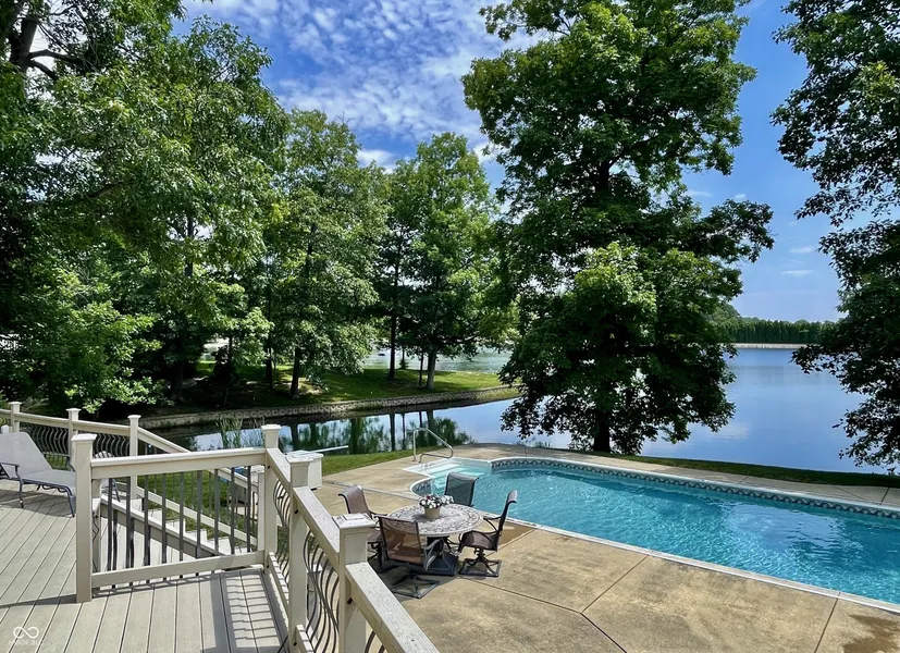 Discover the ultimate in lakefront luxury with this one-of-a-kind retreat nestled on a private, peninsula lakefront lot. Sweeping panoramic views, this 5-bedroom, 4,000+ sq. ft. home offers unmatched privacy, space, and serenity in the heart of Foxcliff North Estates. Step outside to your very own resort-style oasis, where an in-ground pool sets the stage for summer fun and unforgettable gatherings. For the true lake life experience, stroll down to your private dock and set off for a peaceful boat ride or a sunset paddle. The expansive property-rare in both size and seclusion-offers room to breathe, entertain, and fully embrace lakeside living. Inside, an open-concept layout connects multiple living and dining areas, accented by three cozy fireplaces that create warmth and charm throughout. The gourmet kitchen is a dream for entertainers, flowing effortlessly into the heart of the home. The grand primary suite is a retreat of its own, featuring a spa-like en-suite bath and a private fireplace. A main-level bedroom with a handicap-accessible bath offers added comfort for guests or multi-generational living. Whether you're lounging poolside, hosting lakeside gatherings, or simply enjoying the ever-changing water views from your backyard, this extraordinary property offers a lifestyle of luxury, tranquility, and distinction. And do not miss the oversized 2-car garage with plenty of room for storage, workshop or other toys. Several big-ticket items have already been done in this classic, stately home. The roof is only a couple years old. A brand-new water heater has just been installed, along with some new paint. Don't miss this rare opportunity to own a true lakefront gem in Foxcliff North Estates. Adjoining lakefront lot with detached garage could be purchased separately with the house. Talk to listing agent for details.