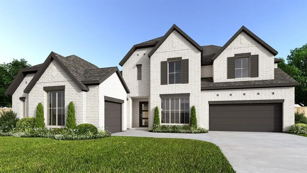 A large front porch opens into a grand two-story entryway that boasts a curved staircase. Just off the entrance, is a guest suite with private access to the one-car garage. Adjacent to the guest suite is the formal dining room. As you walk past the stairs, which features a bonus storage space, you enter the grand family room which boasts tall ceilings, a wood mantel fireplace, and sliding glass doors that leads to the covered patio, while French doors lead into the home office right off the living space. The kitchen features an island with built-in seating, a 5-burner gas cooktop, double wall oven, a walk-in pantry and a butler's pantry that leads into the dining room. The morning area is embraced by two walls of windows and allows additional access to the covered backyard patio. The primary bedroom boasts a tray ceiling, a wall of windows and French doors, leading into the primary bathroom which features dual vanities, a freestanding tub, glass enclosed shower, and large walk-in closet. Upstairs you are greeted by a view to the first floor. The oversized game room is connected to the two secondary bedrooms that feature a Hollywood bathroom. The two-car garage is located in the hallway that leads to the kitchen.