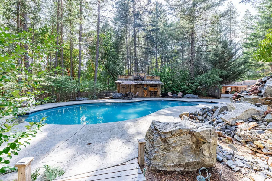 This Unique, One of a Kind Property on 3.98 acres has it all!! Main House, ADU, 3700 sq ft Shop with Bar, In-ground pool with Rustic Pool House and full bath, Hot tub, Koi pond with waterfall and an old mining town feel, Pole Barn and an Oversized 2 Car Garage. The Main house is 1880 sq ft with 3 Bedrooms, an Office and 2 Bathrooms. Split floor plan with updates throughout include Hickory hardwood flooring in the main living areas, gas fireplace, and remodeled kitchen. The ADU is 800 sq ft with 2 bedrooms and half bathroom, full kitchen. The Shop includes RV sized automatic doors, a Vehicle Lift, Bar Area, Full Bath, and washer/dryer hookups. Follow the paths around the property while being transported back in time and taking in the beautiful landscaping and enjoying the abundance of outdoor entertainment areas and wildlife. Fully fenced property with 2 automatic gates,2 wells, main house generator, greenhouse, and plenty of room for all your toys, friends and family.