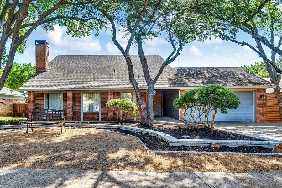 Nestled in the highly sought-after Palos Verdes Estates in Mesquite, surrounded by mature trees, this charming 3 bedroom home offers over 2,200 square feet of meticulously maintained living space. *Roof shingles and decking will be replaced at the home before closing* Upon entry, guests are greeted by a vaulted ceiling in a formal living area, complemented by wood floors, a wood burning fireplace and archways that open into a formal dining room. A wet bar is ideally situated off the dining room for entertaining. The kitchen boasts a breakfast bar, custom soft-close cabinets, granite countertops, stainless steel appliances, and not one but two pantries, including a walk-in option with pull-out drawers. The adjacent family room, with its built-ins and double doors, opens up to the backyard patio. The primary suite features wood floors, a see-through fireplace, office space, and a lavish bathroom with an oversized walk-in shower and multiple shower heads. Additional bedrooms offer versatility, with one currently serving as an office complete with a Murphy Bed and custom built ins. Enjoy a large patio outside and a professional sprinkler systems for the entire yard. Storage is abundant, including a spacious storage closet off the patio and two additional storage garages. Conveniently located near major highways, shopping at Town East Mall, and Lake Ray Hubbard, this home is ideal for those seeking comfort and convenience.