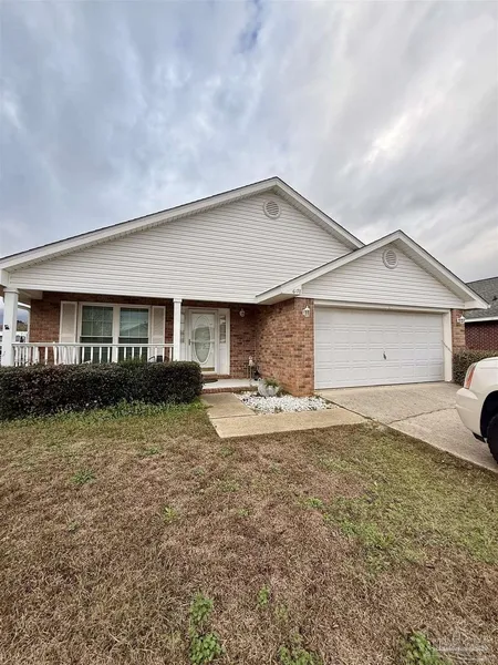 3 bedroom, 2 bathroom home located in the desirable Jaimees Ridge neighborhood of Milton. This inviting property features a functional layout with a bright living area, a kitchen offering ample cabinet and counter space, and warm-toned flooring throughout the main living areas. The primary bedroom includes an ensuite bath, with two additional bedrooms providing flexibility for guests, office, or hobbies. Brick exterior, covered front porch, attached garage, and a quiet, established neighborhood close to schools, shopping, and dining.