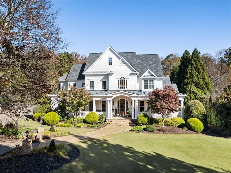Exceptional custom home on nearly three private acres in the prestigious gated community of White Columns Country Club. Nestled at the end of a quiet drive, this residence offers a rare blend of tranquility and connection—where mornings begin with birdsong and evenings unfold on the front porch, surrounded by peaceful beauty.